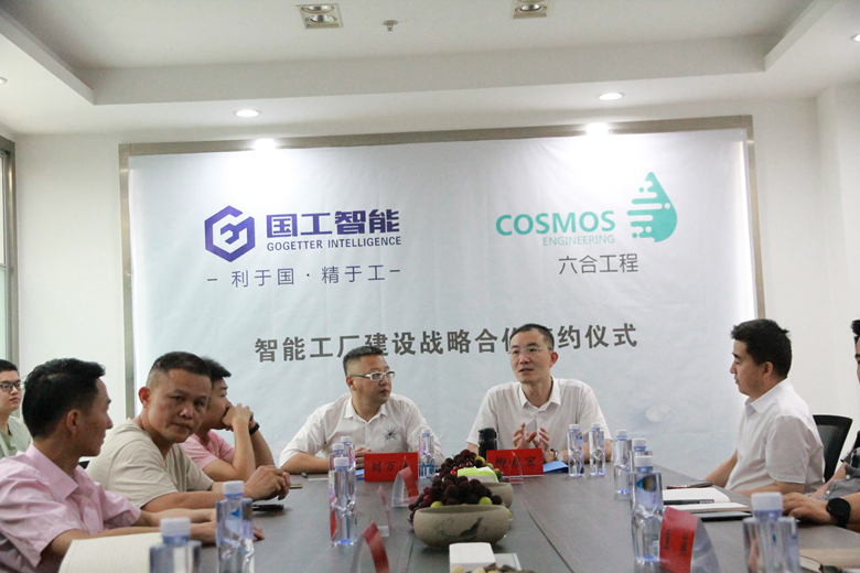 此次戰(zhàn)略合作簽約儀式由國工智能總經(jīng)理柳彥宏、總經(jīng)理助理劉德軍、六合工程總經(jīng)理劉萬斌、設(shè)計(jì)總監(jiān)陳書鵬等領(lǐng)導(dǎo)共同出席。