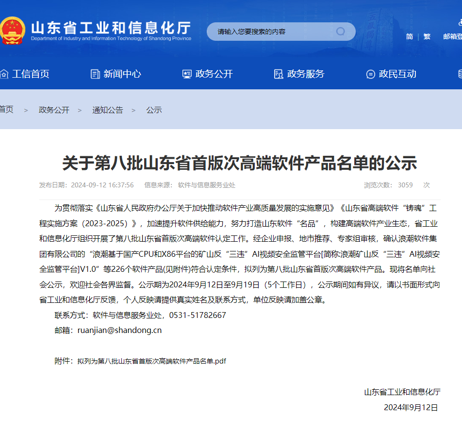 第八批山東省首版次高端軟件產(chǎn)品名單