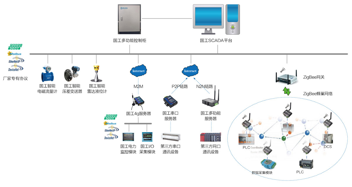 直接可與國工所有工業級服務器連接,完成整個工業網絡通訊系統的設計;