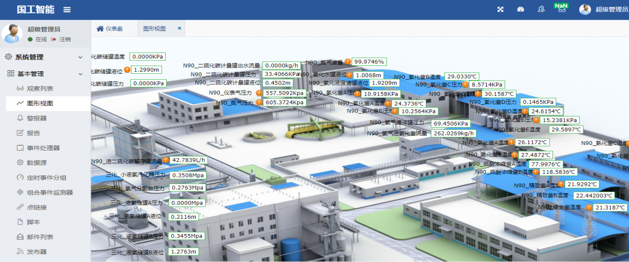 基于以上原因某化工企業(yè)決定實施SCADA系統(tǒng),從生產(chǎn)設(shè)備、過程協(xié)同、設(shè)備底層、質(zhì)量控制等方面著手,實現(xiàn)生產(chǎn)過程和關(guān)鍵性設(shè)備儀表的數(shù)據(jù)采集和監(jiān)控,使生產(chǎn)更加透明化和智能化,保障安全生產(chǎn),使企業(yè)“安、穩(wěn)、長、滿、優(yōu)”運行,幫助企業(yè)降本增效、開源節(jié)流,實現(xiàn)企業(yè)效益最大化。
