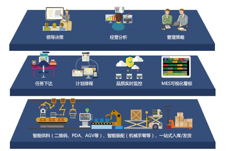 MES屬于ERP計(jì)劃層和車間層操作控制系統(tǒng)之間的執(zhí)行層,主要負(fù)責(zé)生產(chǎn)管理和調(diào)度執(zhí)行。它不單是面向生產(chǎn)現(xiàn)場的系統(tǒng),而是作為上、下兩個(gè)層次之間雙方信息的傳遞系統(tǒng),是連接現(xiàn)場層和經(jīng)營層,改善生產(chǎn)經(jīng)營效益的前沿系統(tǒng)。它提供了一個(gè)能夠集成諸如:訂單執(zhí)行與跟蹤、質(zhì)量控制、生產(chǎn)調(diào)度、物料投入產(chǎn)出管理等功能的的系統(tǒng)平臺(tái),能夠?qū)崿F(xiàn)ERP系統(tǒng)無法實(shí)現(xiàn)的實(shí)時(shí)生產(chǎn)管理報(bào)表功能。