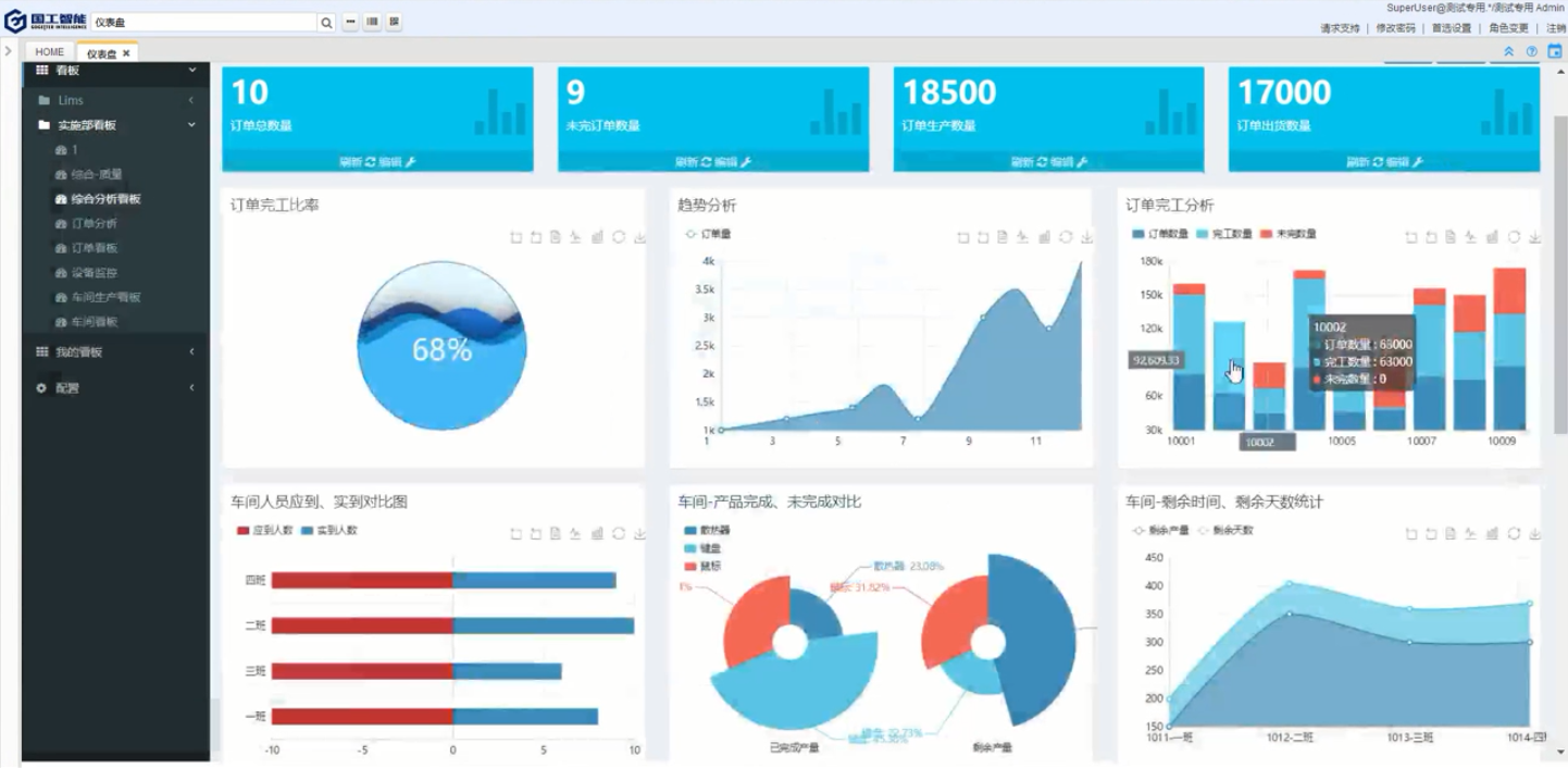 MES在生產過程中接到生產任務后,可以通知生產車間進行減料備料和上料,并通知生產車間人員開始進行設備調試,進行維護,修理和檢修,根據實際運行時間,循環次數或時間控制機器,工具和輔助設備的活動,啟用預防性維護程序。同時進行條碼工單的打印,實現電子批記錄。生產過程中MES系統能夠對之前開工準備的條碼和工單,進行生產制造過程信息采集,消除手動數據收集。之后,采集到的數據將與工單、工藝路徑及參數、物料、質量等信息進行相互驗證,起到物料防錯、工序防錯防漏、工藝防錯的作用,同時也將采集到的生產及質量信息實時反饋到系統的各看板、SPC和統計報表中,利用可視化的方式獲取實時生產指標和分析,使得管理者在第一時間掌握車間的物料、生產進度、質量情況,為管理者的決策提供數據支持。