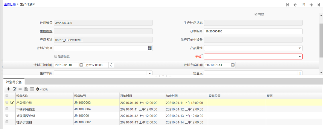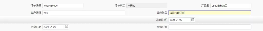 創建產品名稱為LB32自制加工的化工產品生產訂單,其中訂單日期為2021-01-09,交貨日期為2021-01-20。如下圖所示: