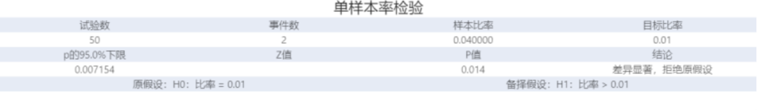 使用單比率檢驗可以估計二項總體比率,并將該比率與目標值或參考值進行比較。可以在數據的單一特性僅包含兩個類別(如合格/不合格)時執行使用此分析,確定總體比率是否不同于指定的假設比率和計算可能包括總體比率的值范圍。