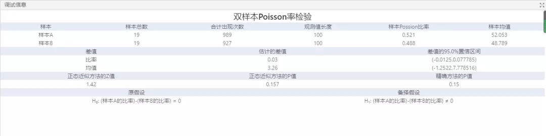 圖3 雙樣本Poisson率校驗分析組件及參數配置