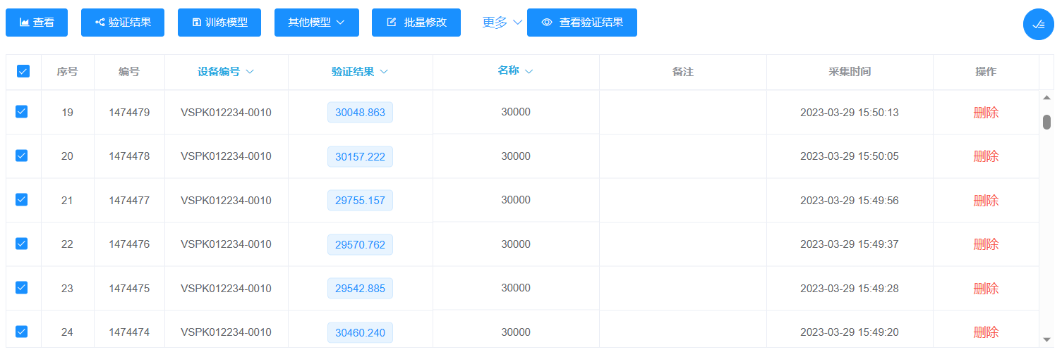 將所采集到的每組數據取10條進行查看分析,選取線性關系較為合適的通道使用線性回歸的方式進行訓練模型,模型訓練成功后,取全部數據進行檢驗,以30000ppm和20000ppm兩組數據檢測結果為例,如下圖: